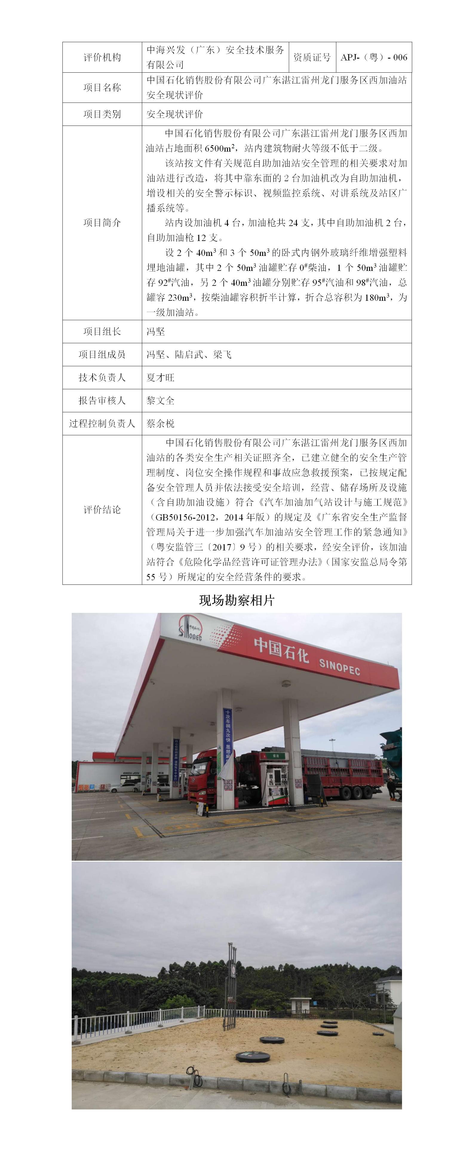 高州市东岸镇大潮加油站扩建工程项目安全设施竣工验收安全评价报告