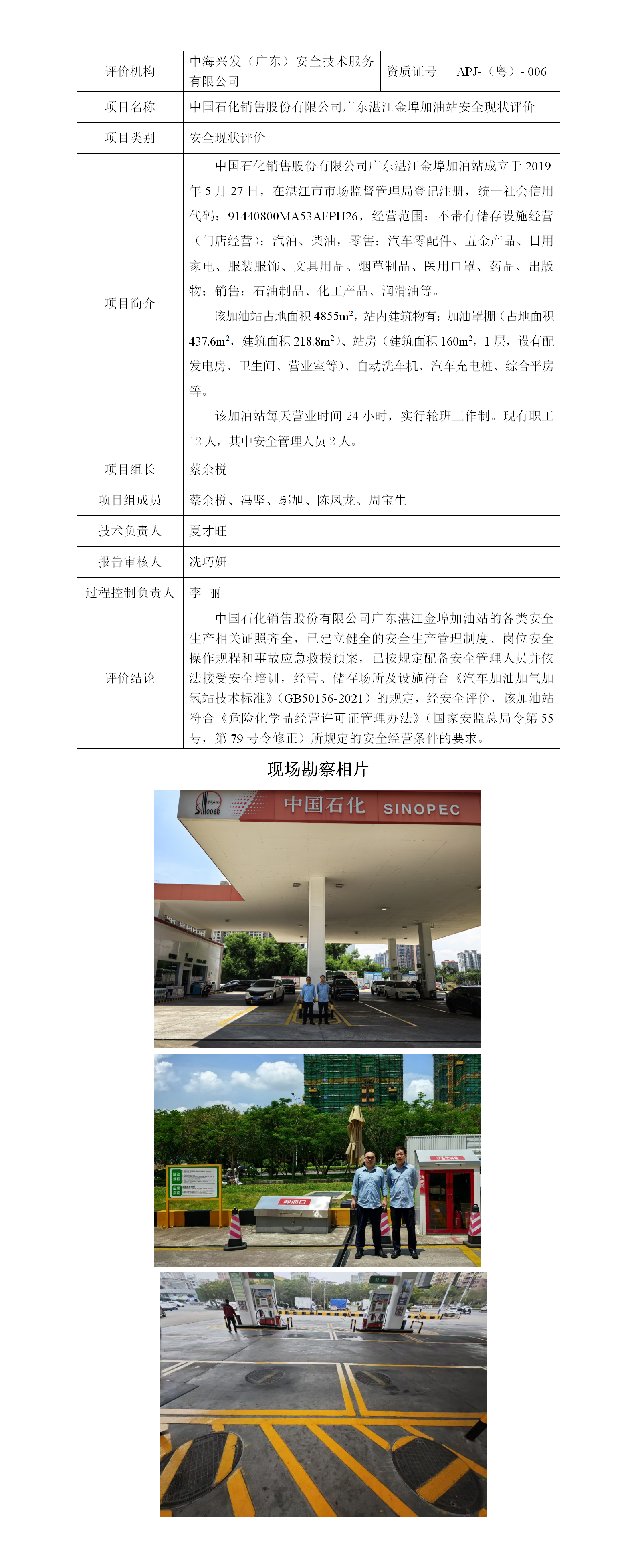 中国石化销售股份有限公司广东湛江金埠加油站安全现状评价(出版日期:2025年1月16日)