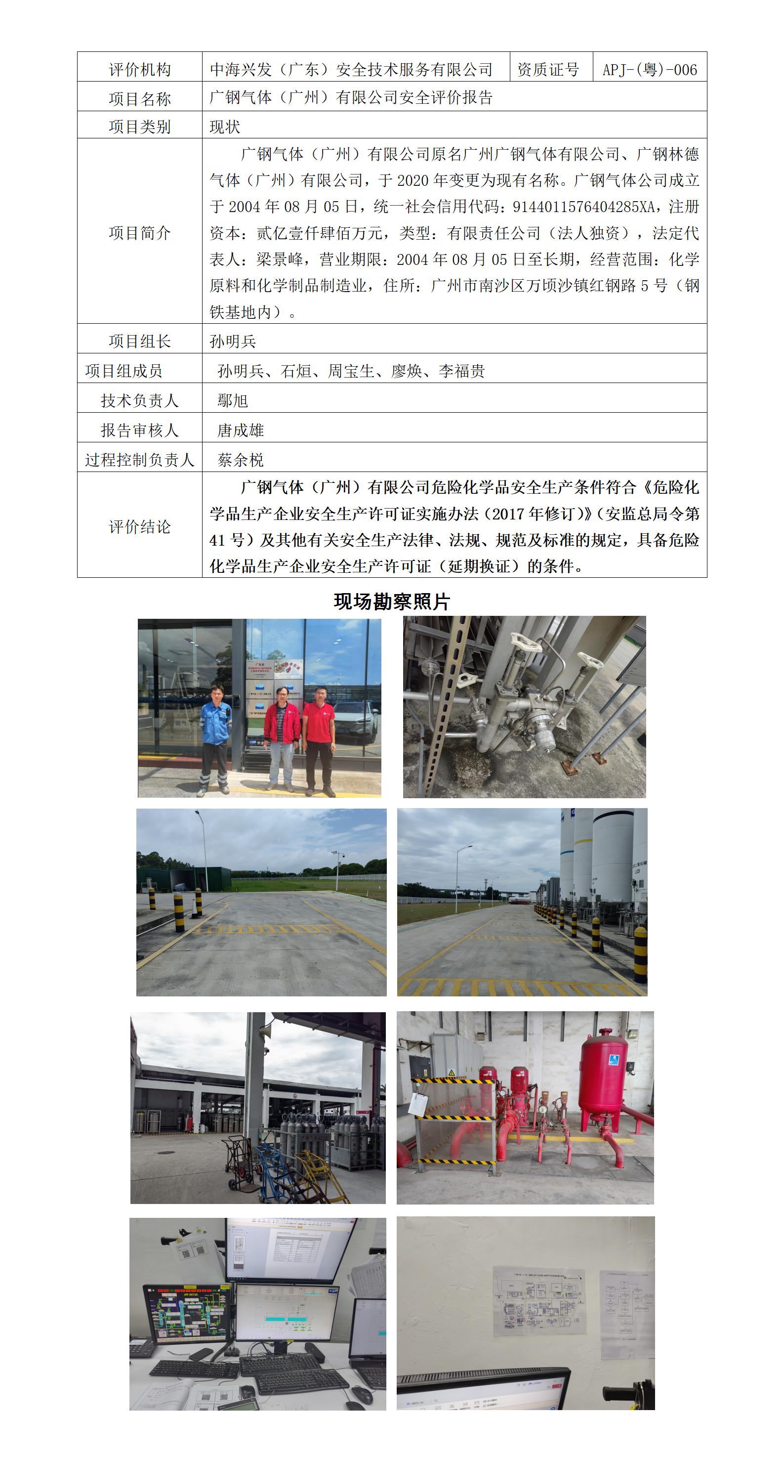 迪艾基(广州)气体有限公司危险化学品储存经营安全现状评价报告
