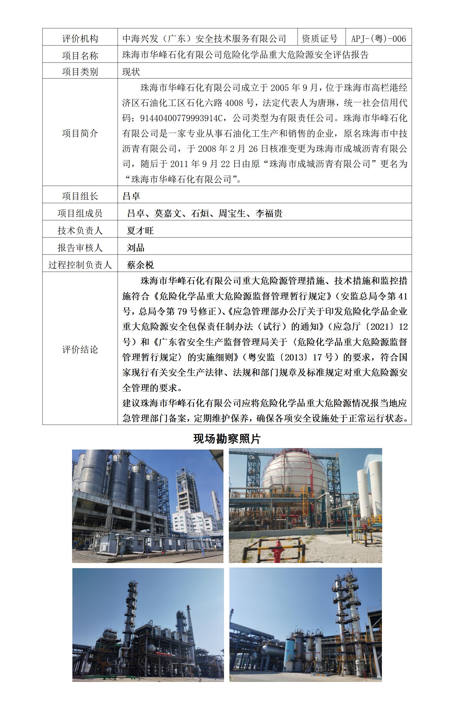 珠海裕珑石化有限公司利旧改建180万吨年汽油调和、60万吨年柴油调和项目安全评价报告