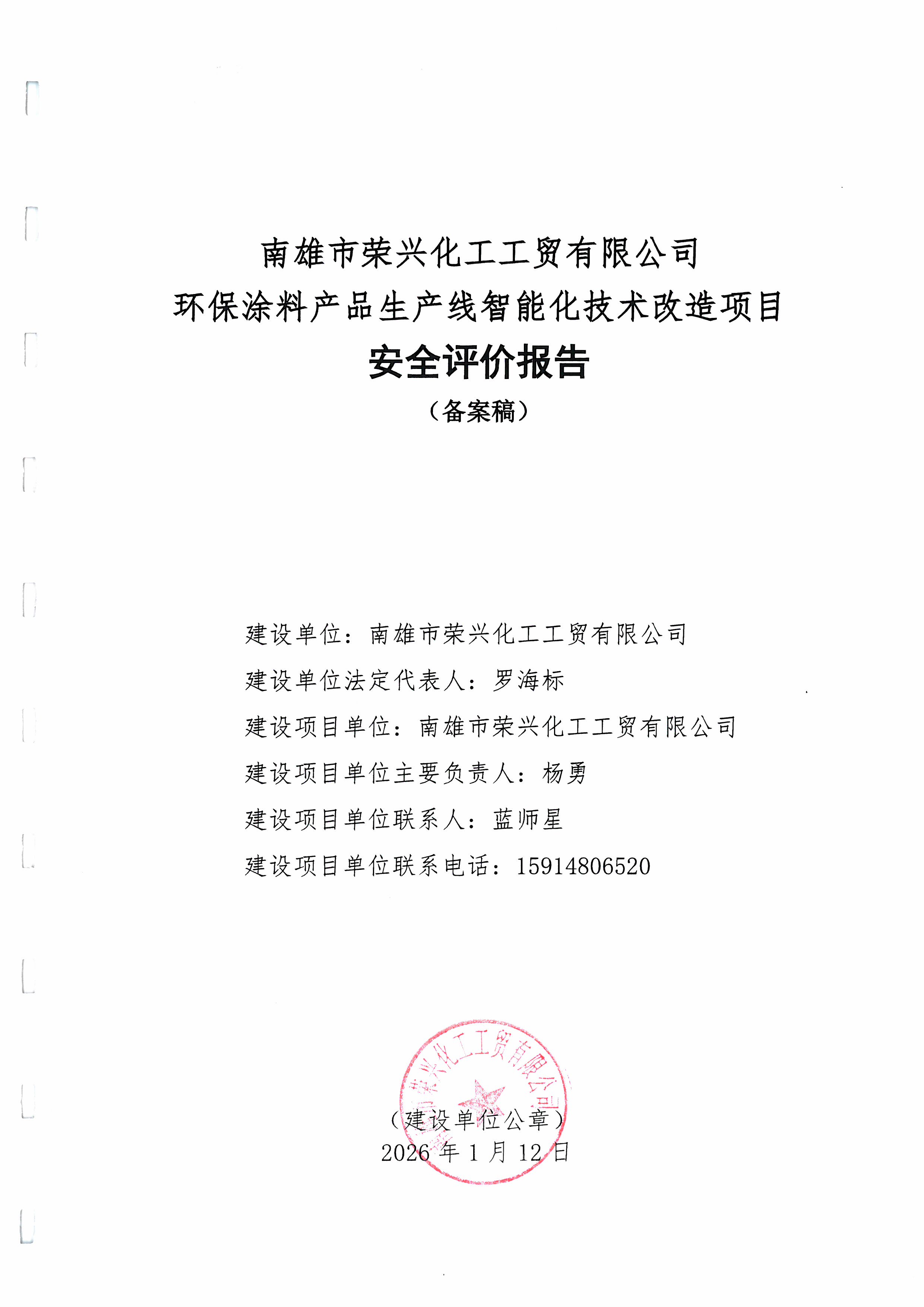 下一篇:珠海市华峰石化有限公司危险化学品重大危险源安全评估报告